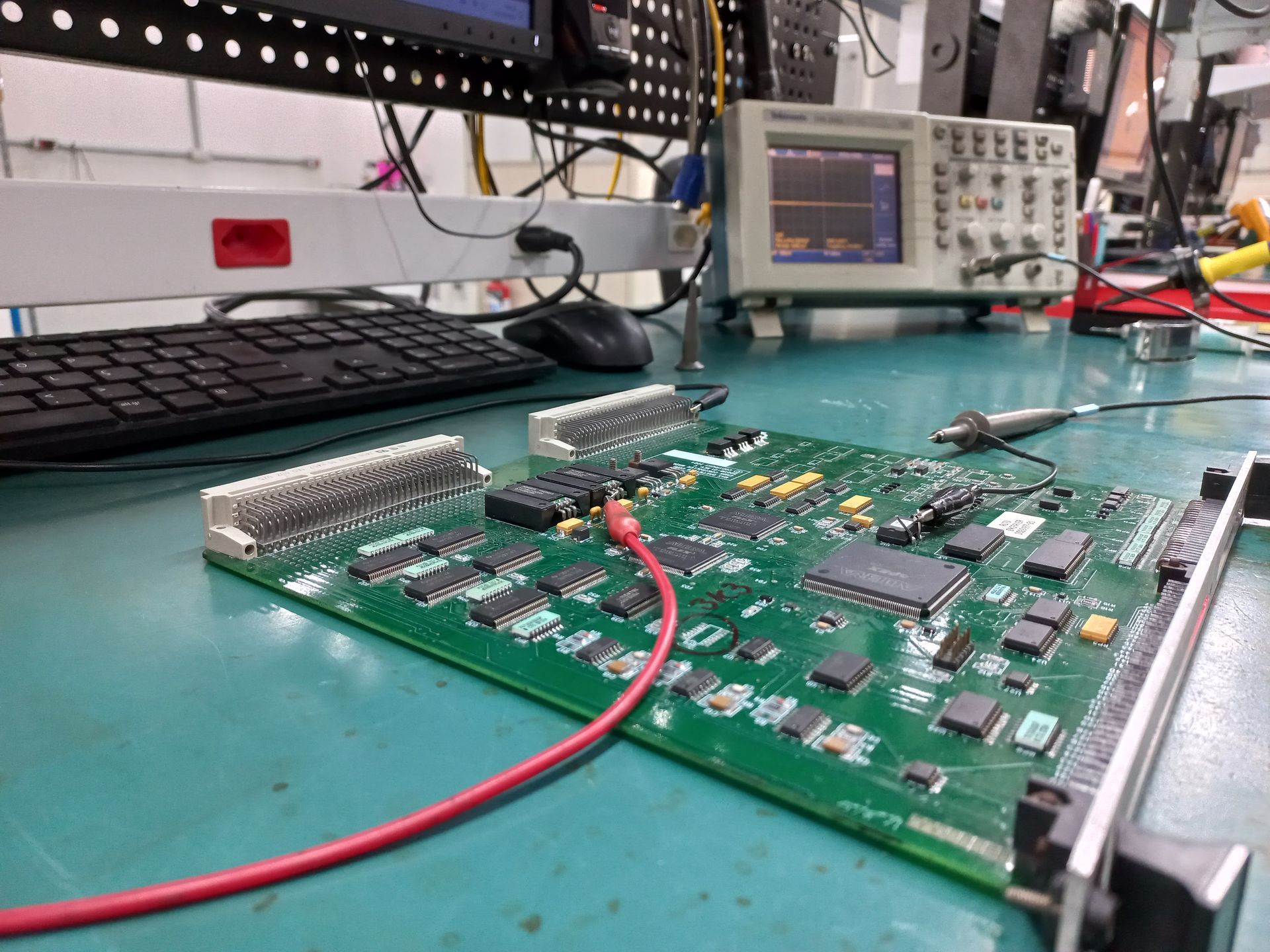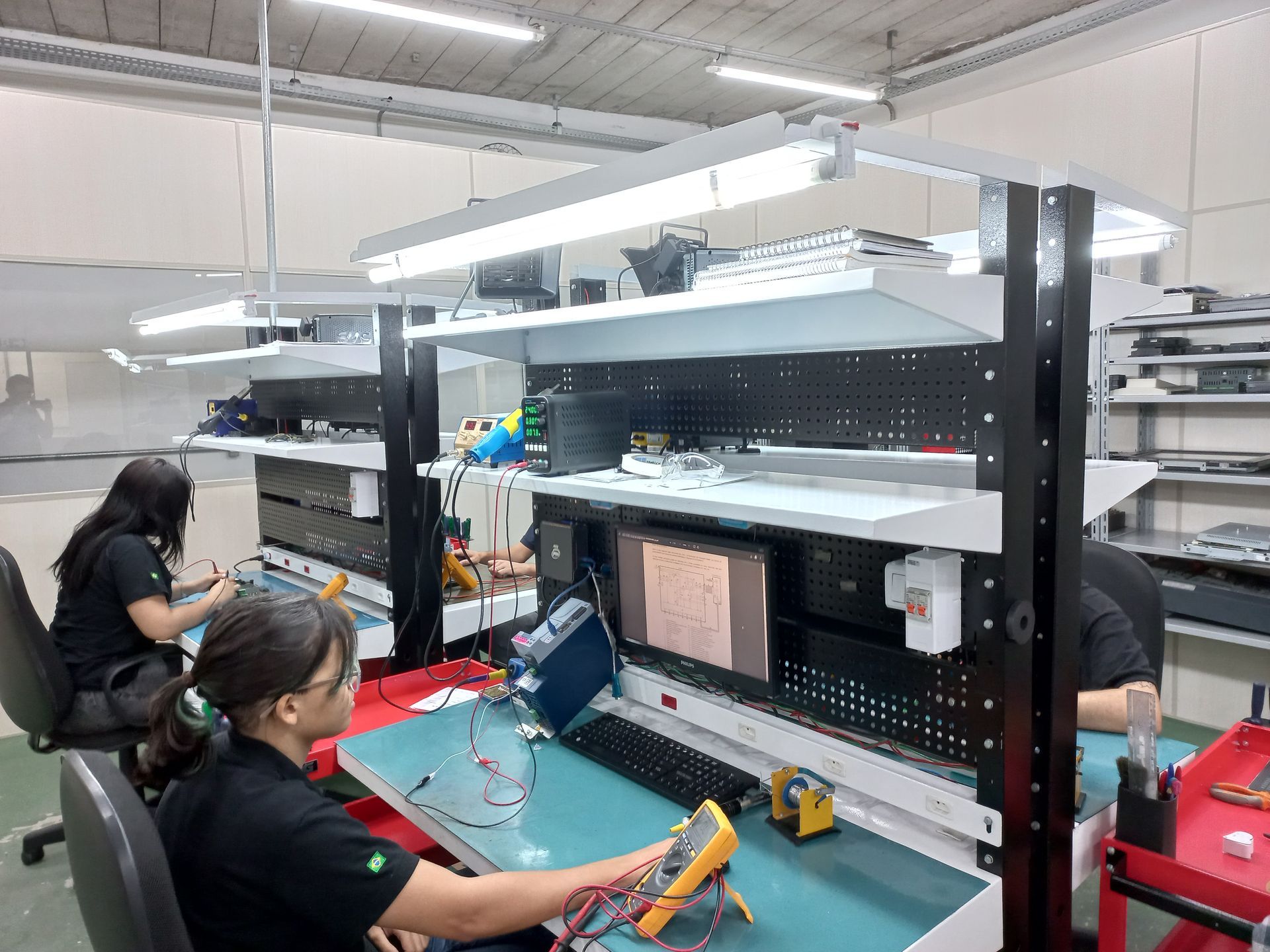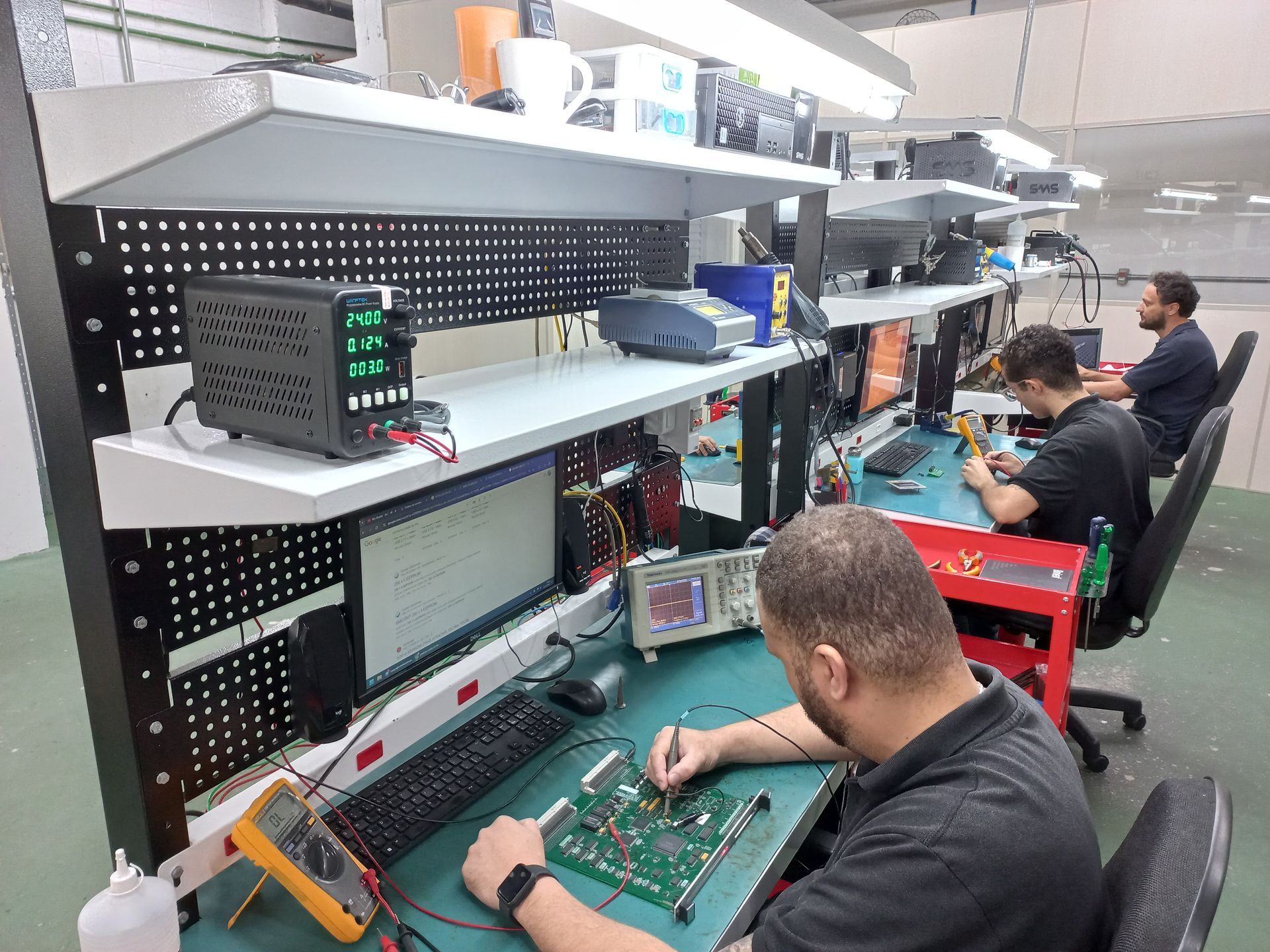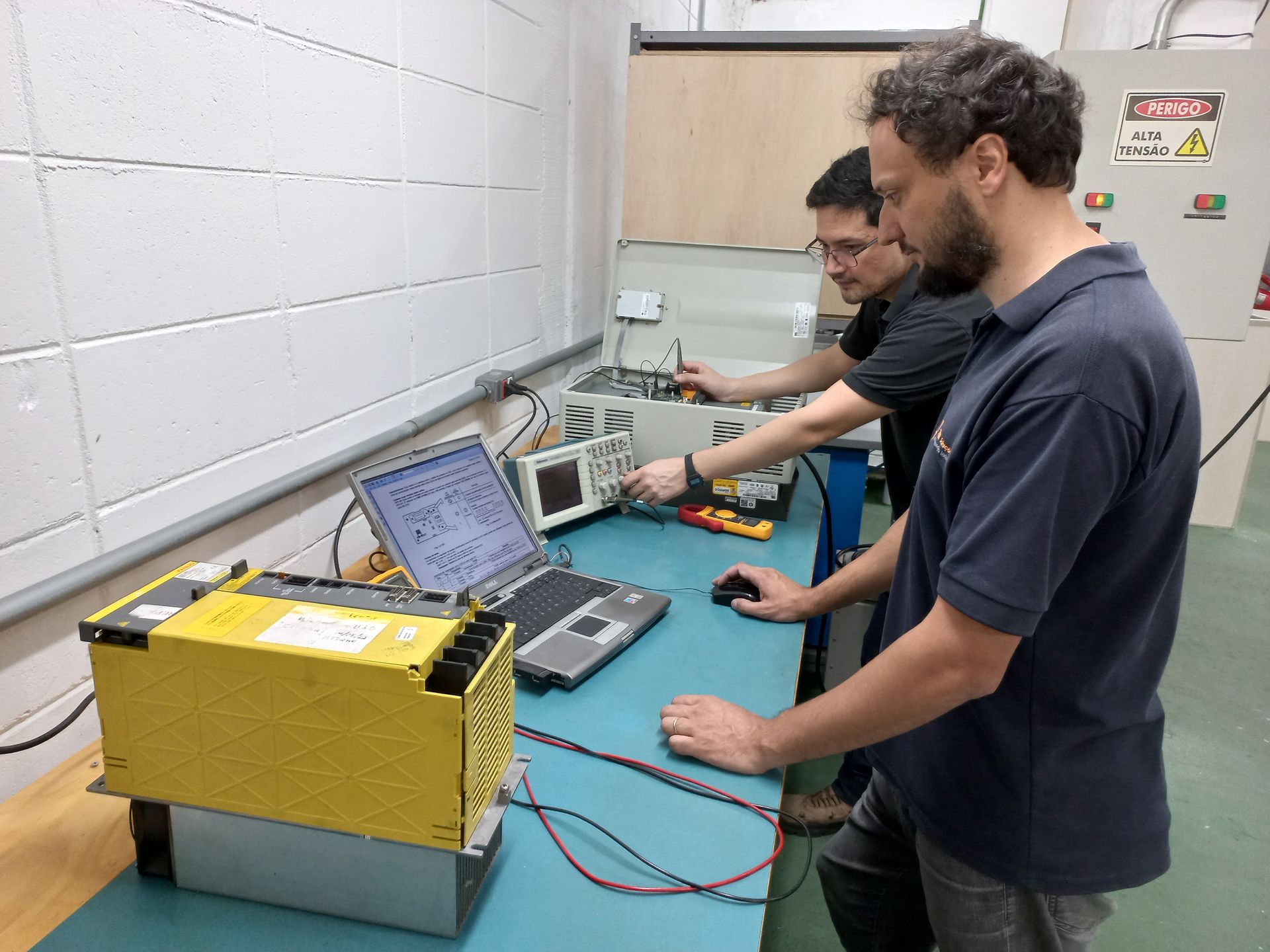 O equipamento passa por uma inspeção completa para identificar falhas nos módulos, fontes e circuitos de potência.